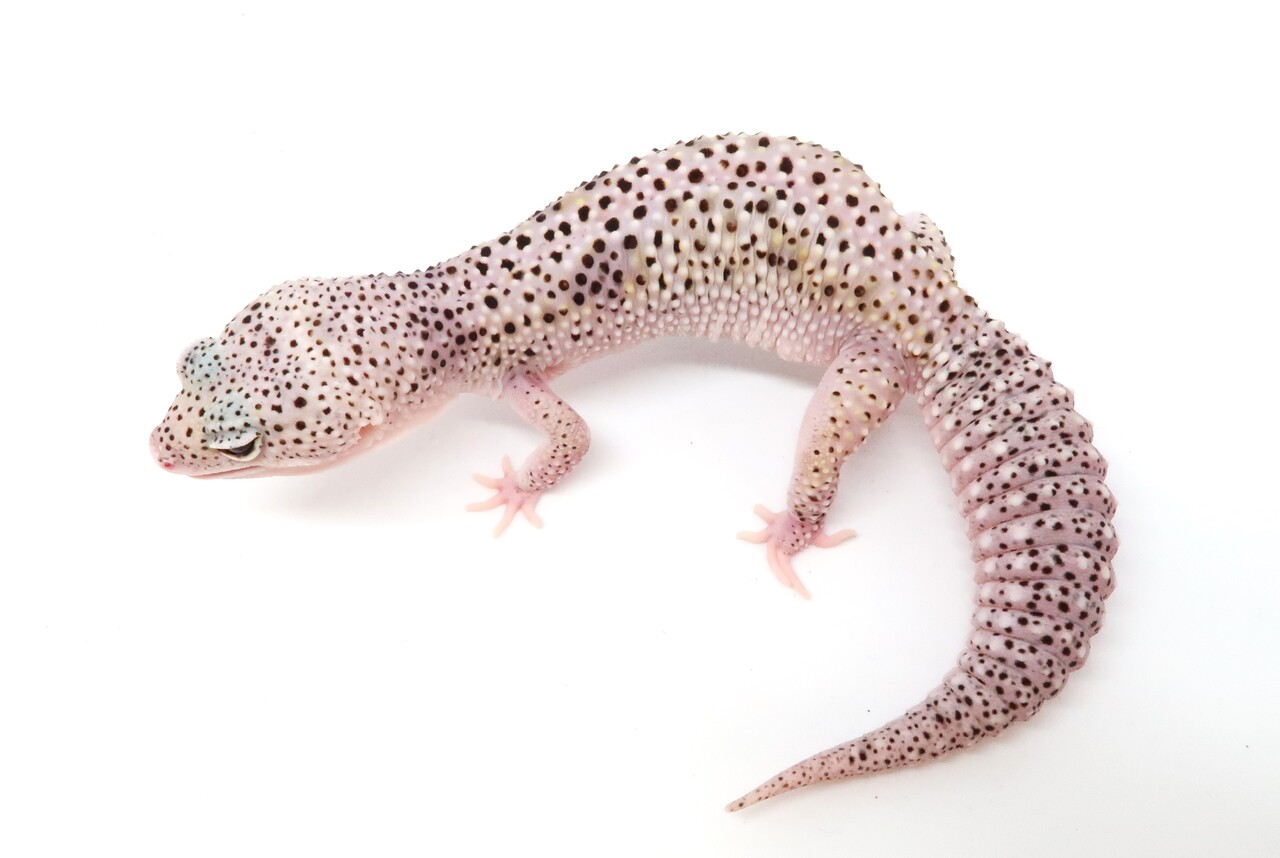 豹紋堂さんのハイクオリティ個体ですよ、見事なボールド具合です。しかもアルビノなんですねー